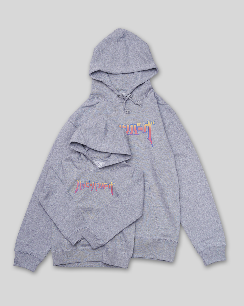 ファミリーコーデもできるハッピーハンバーグのロックバンドロゴパーカー。